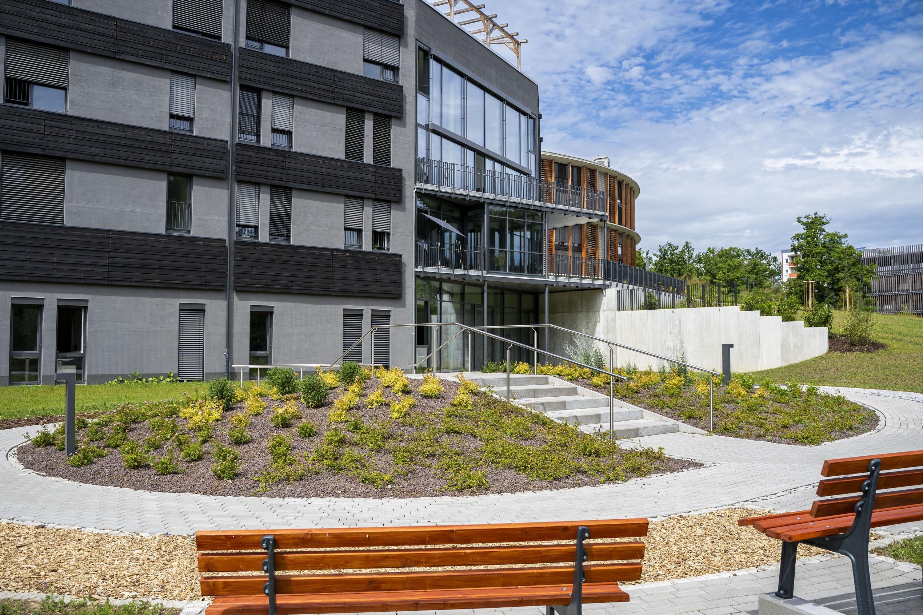 Die neuen Außenanlagen sind fertig! Sie laden ein zum Verweilen, Durchatmen und Krafttanken – mit großzügigen Freiflächen, barrierefreien Wegen und Ruhezonen – harmonisch eingebettet in die Landschaft rund um unsere Klinik.